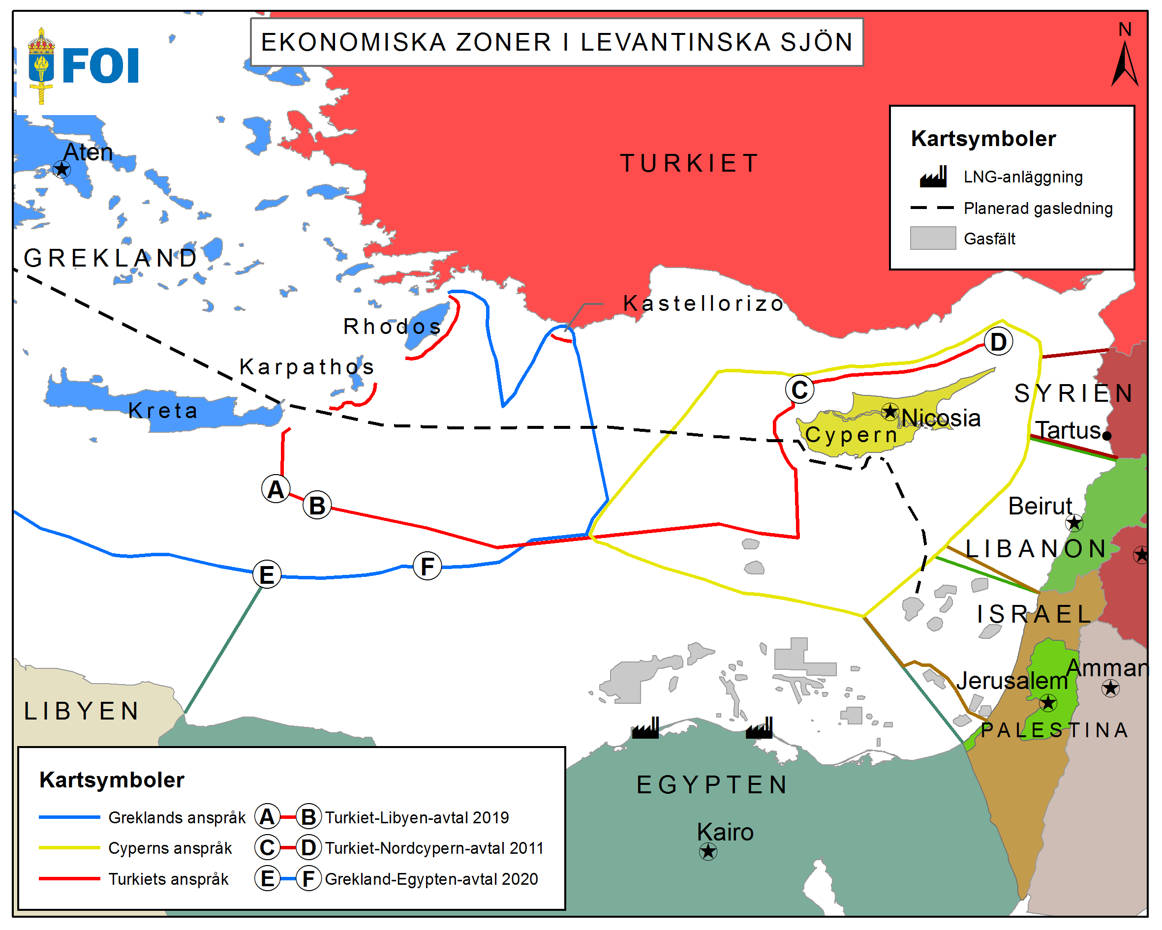 Ekonomiska zoner i Levantiska sjön. Design: Per Wikström, FOI