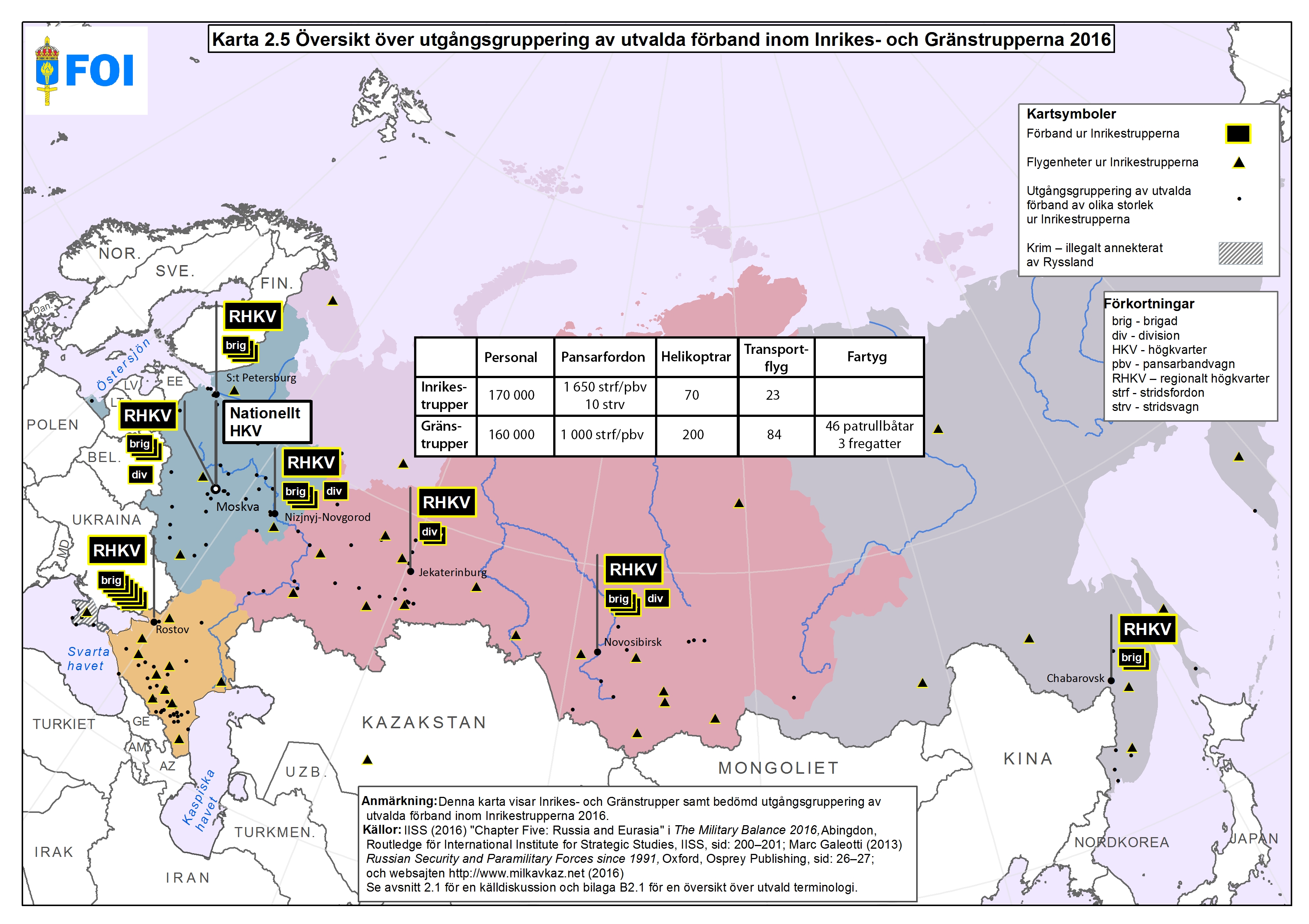 - Karta 2.5 Översikt över utgångsgruppering av utvalda förband inom Inrikes- och Gränstrupperna