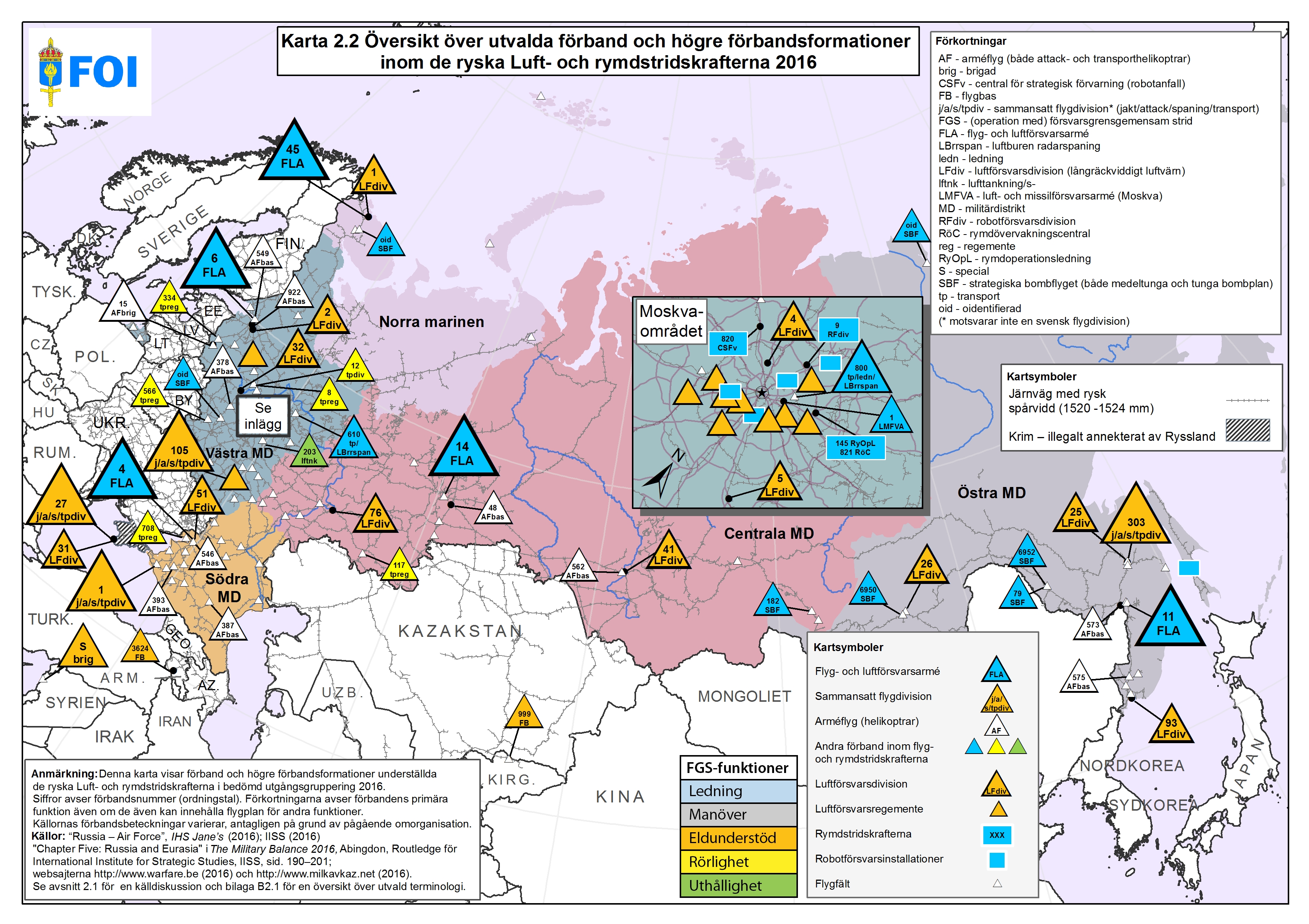 - Karta 2.2 Översikt över utvalda förband och högre förbandsformationer inom de ryska Luft- och rymdstridskrafterna