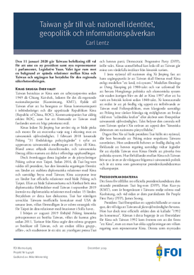 Taiwan går till val: nationell identitet, geopolitik och informationspåverkan