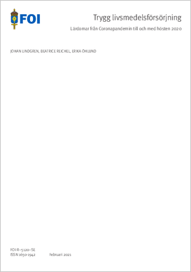 Livsmedelsverket har gett FOI, Totalförsvarets forskningsinstitut, i uppdrag att utföra en studie av pandemins påverkan på livsmedelsförsörjningen i Sverige. I studien identifieras tre utmaningar. För det första skapade åtgärderna för att begränsa smittspridningen en stor om-ställning av konsumtionen av livsmedel. Samtidigt som konsumtionen av måltider i storkök och restauranger minskade, ökade konsumtionen i hemmen. Dagligvaru-handeln upplevde en påtaglig ökning av efterfrågan på deras produkter. Personalförsörjningen har också varit en utmaning. Även om situationen varit hanterbar är det ett område där många upplever en fortsatt oro inför en förvärrad situation. Den tredje utmaningen var försörjningen av insatsvaror till livsmedelsindustrin. Dessa utmaningar har dock upplevts i olika grad för skilda typer av företag. Generellt kan dock sägas att de inledande problemen med transporter, framförallt vid gränsövergångar inom EU, skapade stora utmaningar för alla verksamheter som är beroende av ett kontinuerligt flöde av varor. EU:s agerande för att underlätta gränsövergångarna var viktigt för att åter få igång godstransporterna. En viktig slutsats från studien är också att planeringen även fortsatt bör ta höjd för andra typer av störningar. Att det gick förhållandevis bra denna gång betyder inte att livsmedelsförsörjningen också fungerar vid andra typer av allvarliga störningar, eller en ny pandemi, som drabbar samhället på ett annat sätt.